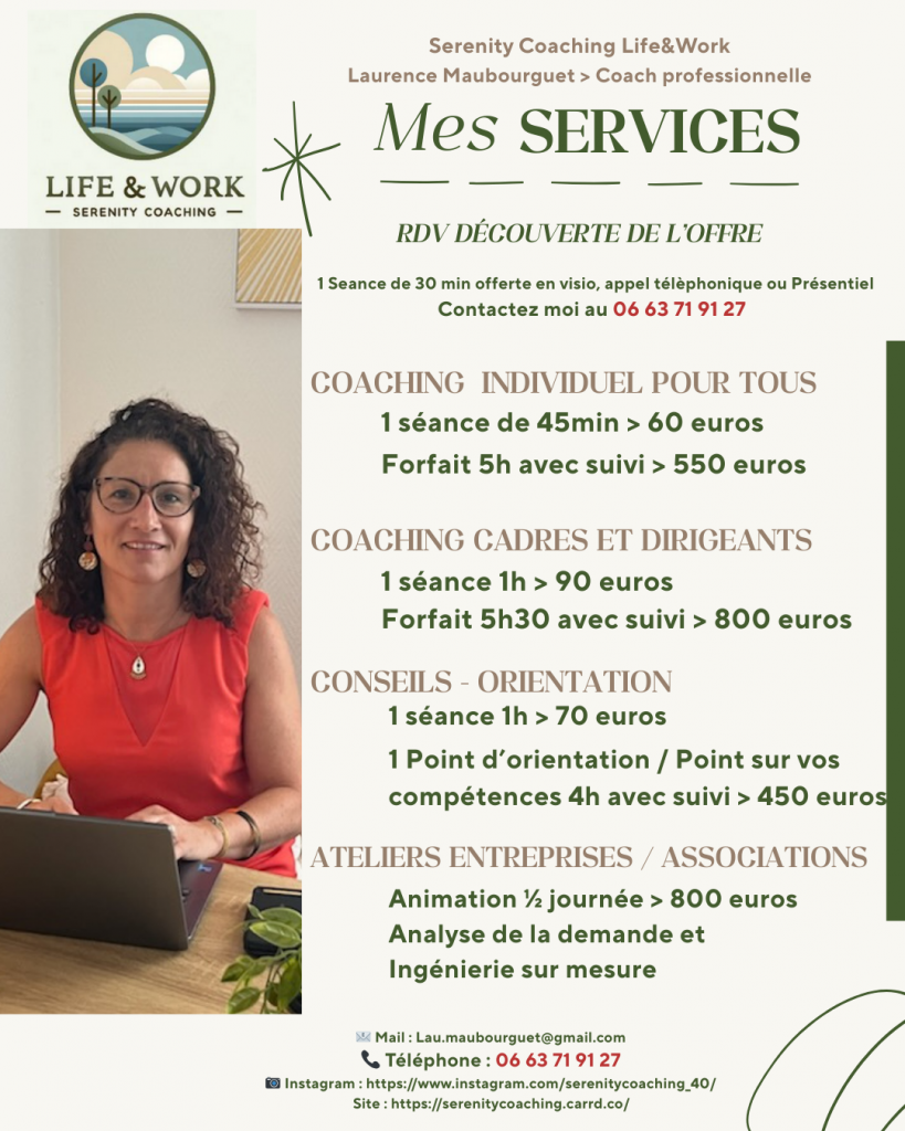 Prendre rdv avec Laurence Maubourguet au 0663719127 pour des séances de coaching personnel et professionnel